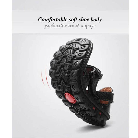 Herrensandalen aus Leder, Outdoor-Wandersandalen, wasserdichte sportliche Sportsandalen, Fischer-Strandschuhe, Wassersandalen mit geschlossener Spitze