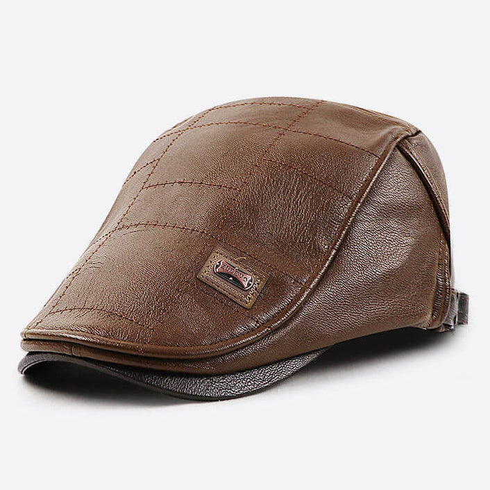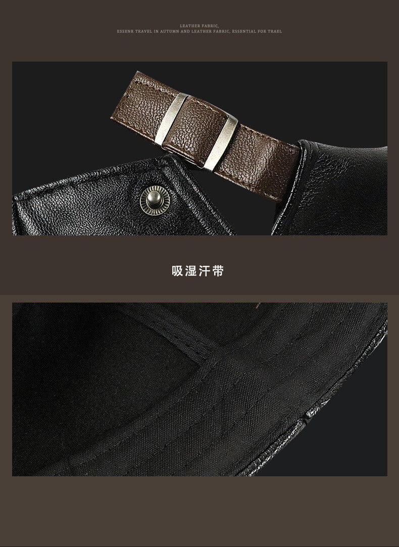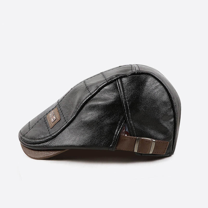 Mens Adjustable Leather Flat Cap Stitch Newsboy Cap Driving Fishing Cabbie Hat