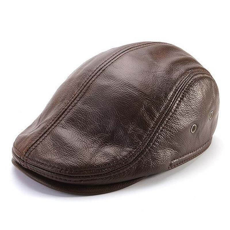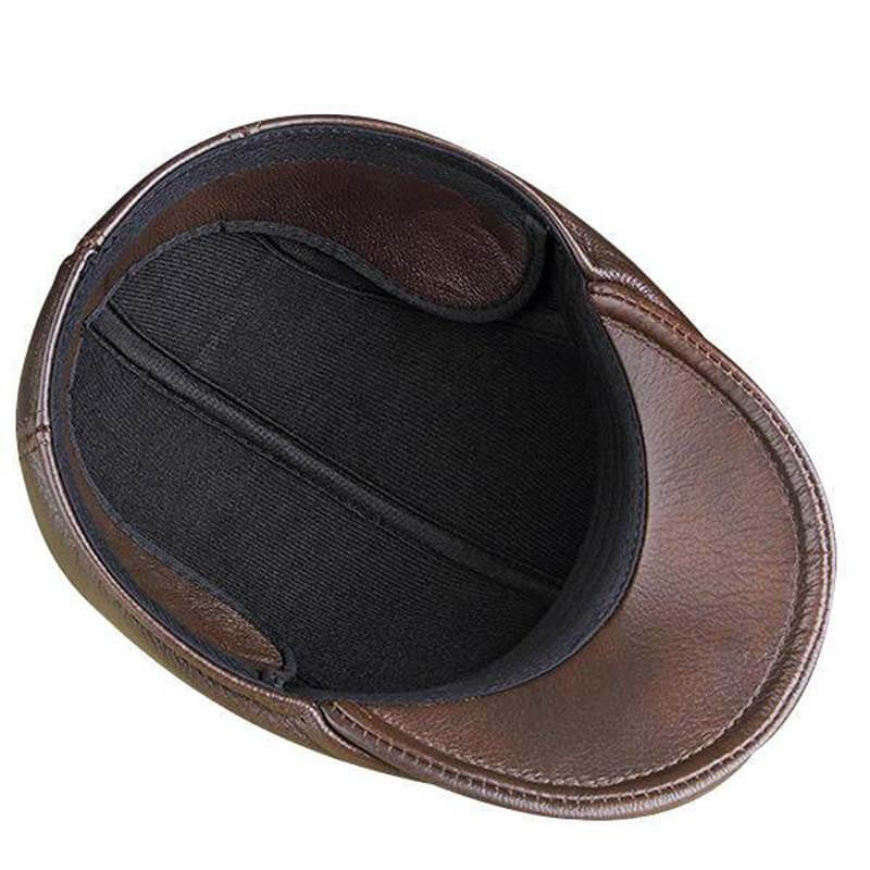 Herrenweinlese Echte Rindsleder Baret Caps Ohrklappen Winddichte Duckbill Warme Schwarz Braun Hüte