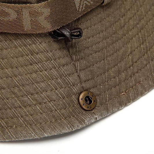 Hombre de algodón de los hombres Bordado de algodón Cubo Cubo Sombrero Barbilla ajustable transpirable plegable Correa de barbilla