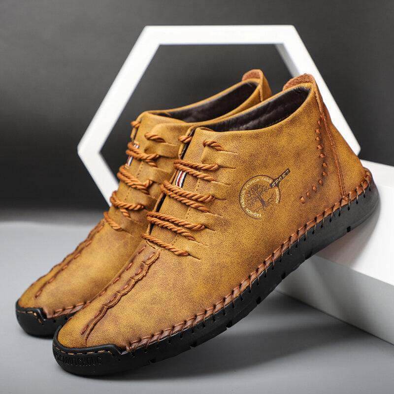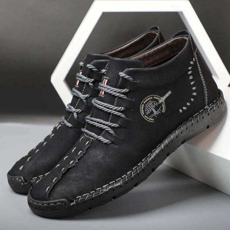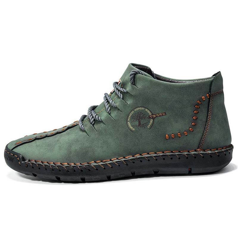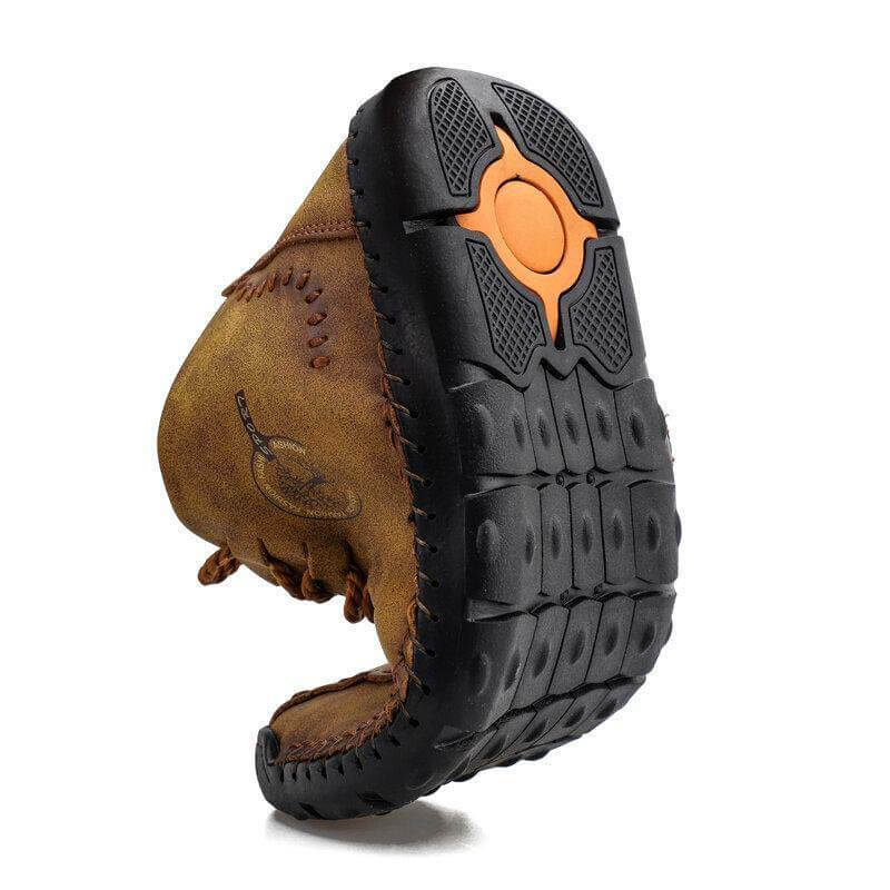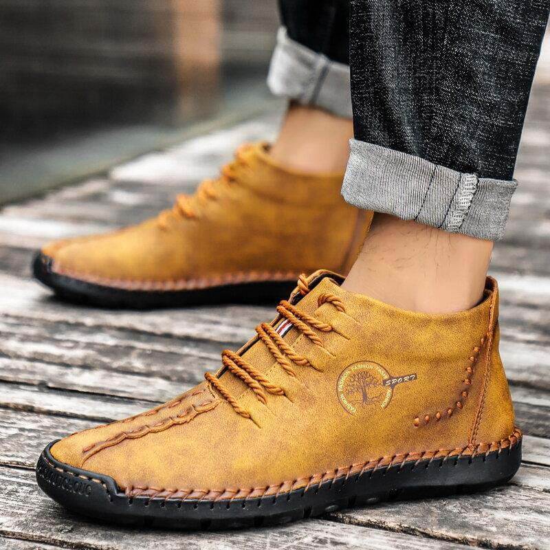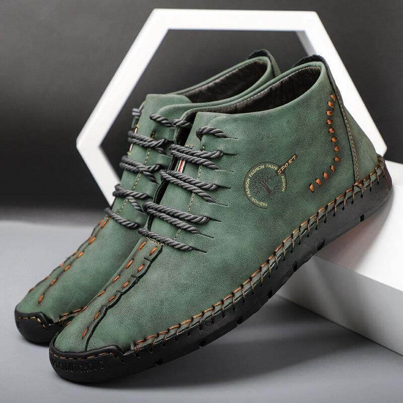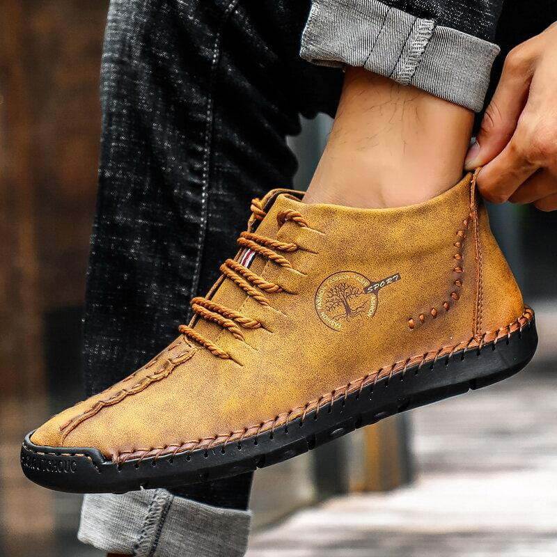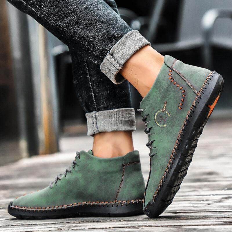 Hombres costuras a mano cuero sin deslizamiento suave suela de tobillo casual