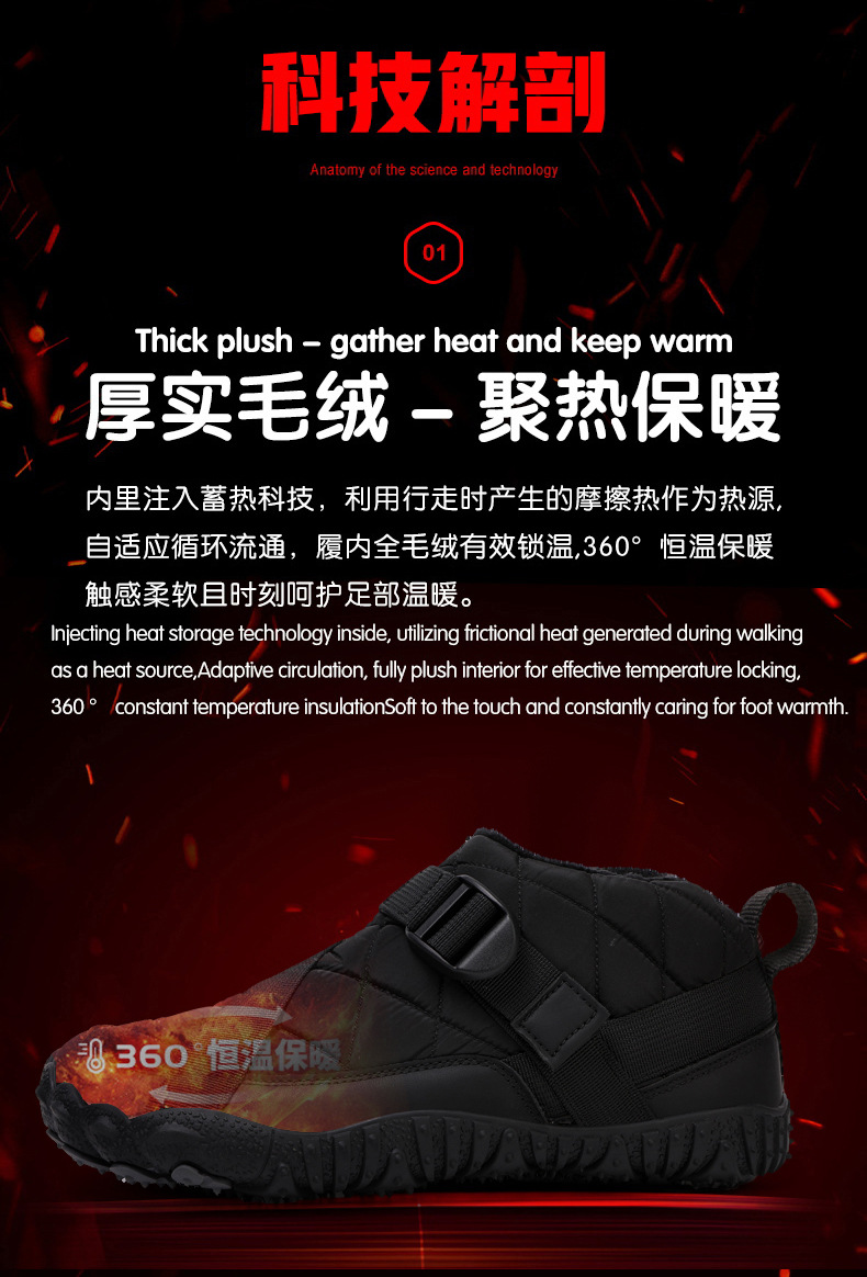 棉鞋跨境新款男女五指户外加绒加厚防水防滑耐磨棉鞋户外休闲雪地