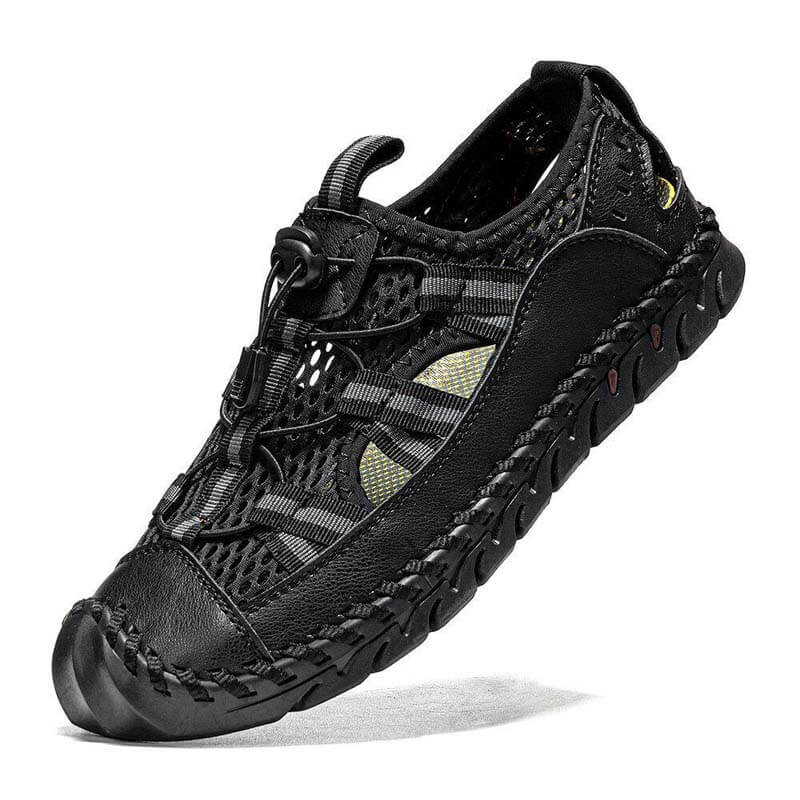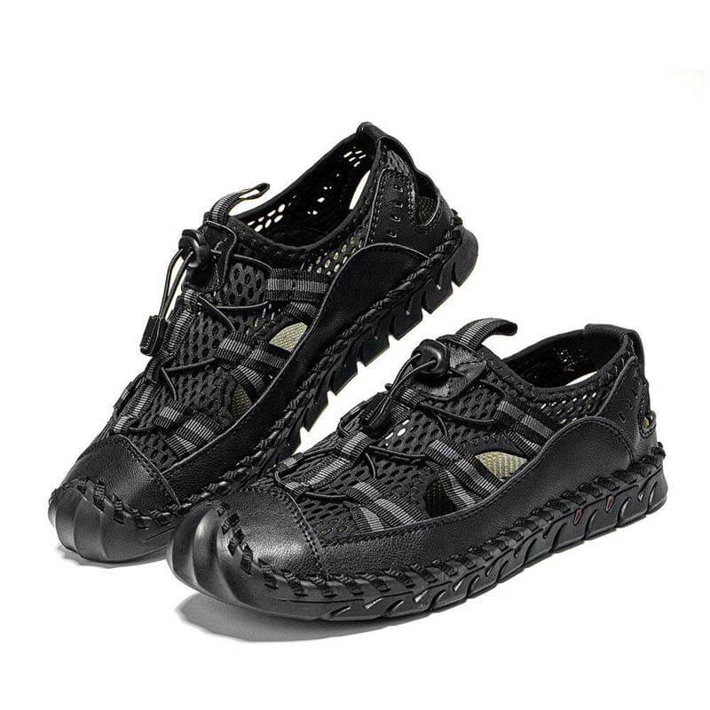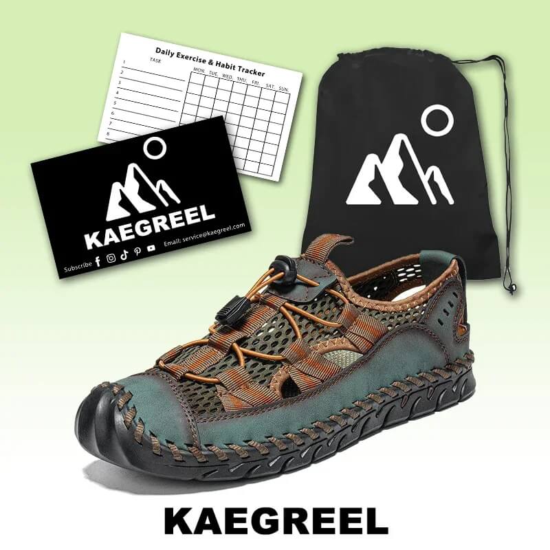 Sandalias de cuero de microfibra al aire libre de la malla de la malla de los hombres cerrados de Kaegreel