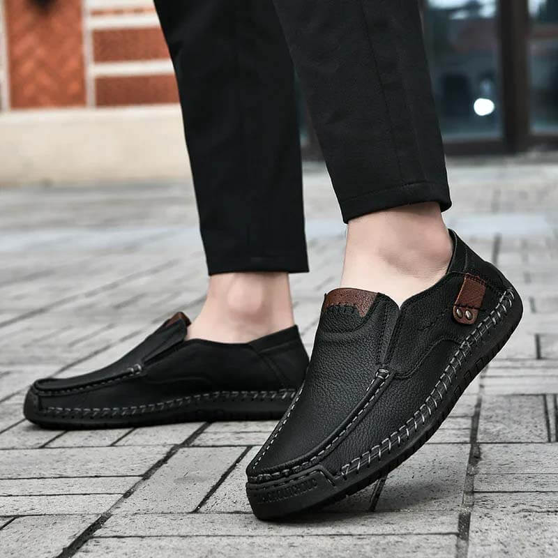 2024春季新款外贸亚马逊热销男士休闲鞋户外真皮手工大码豆豆鞋