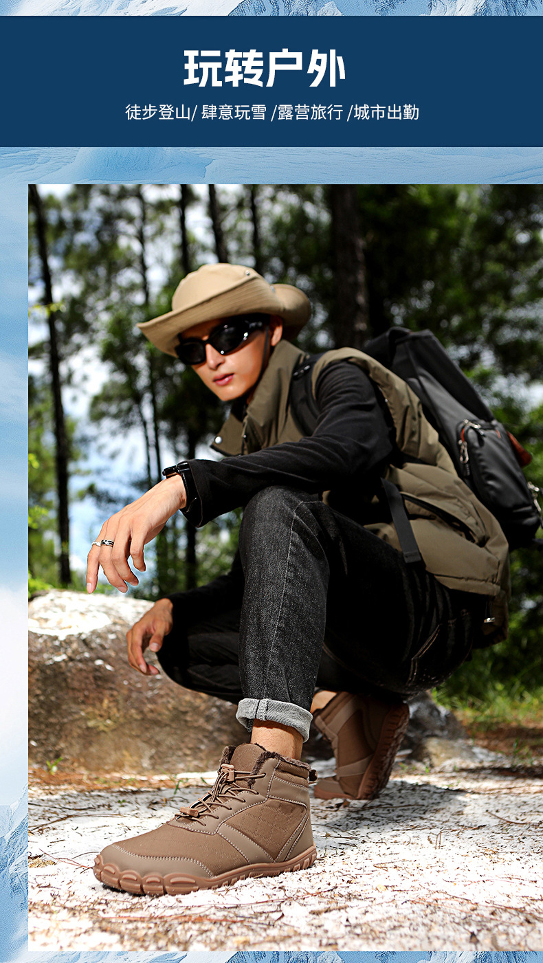 跨境秋冬季户外五指雪地靴棉鞋男女情侣防水防滑加绒加厚登山棉靴
