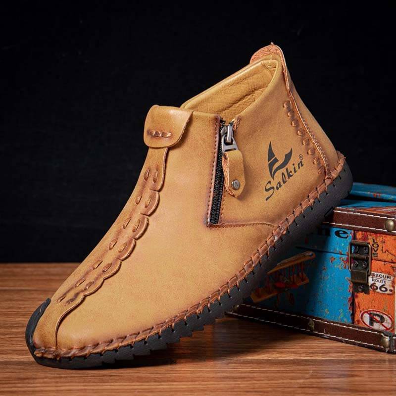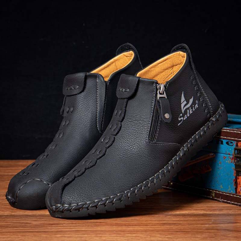 Slip comodi morbidi con cerniera di cucitura a mano maschile su stivali alla caviglia