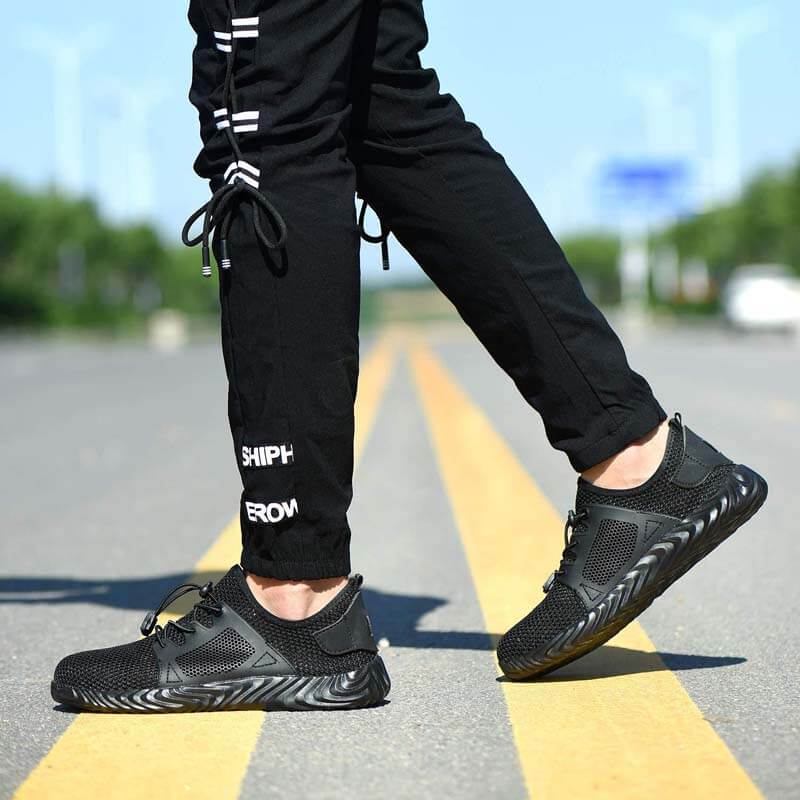 —Protective Steel Toe Cap: Anatomically correct steel toe sneakers for a more spacious toe box and excellent arch support that encloses the natural contours of the foot.