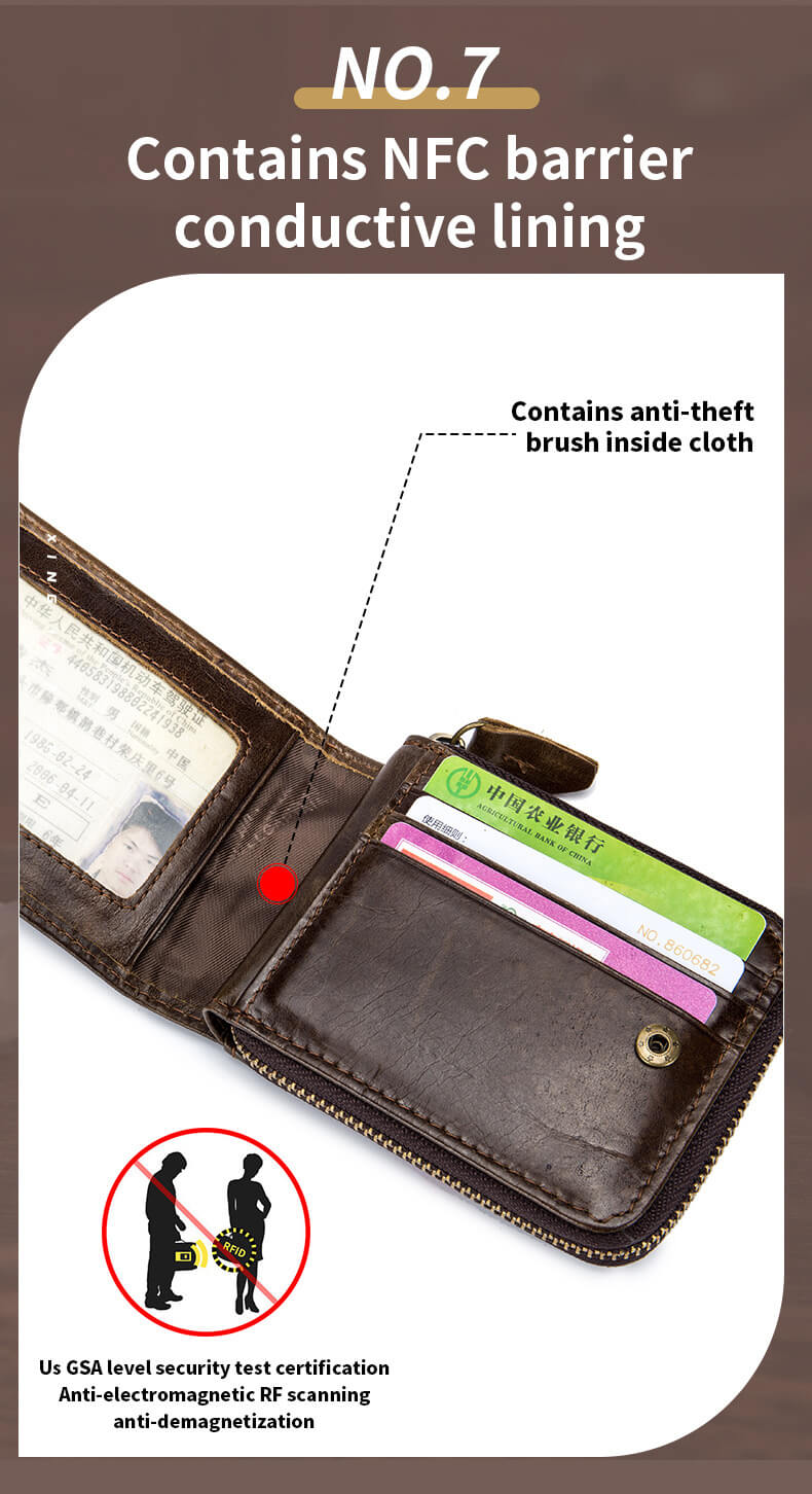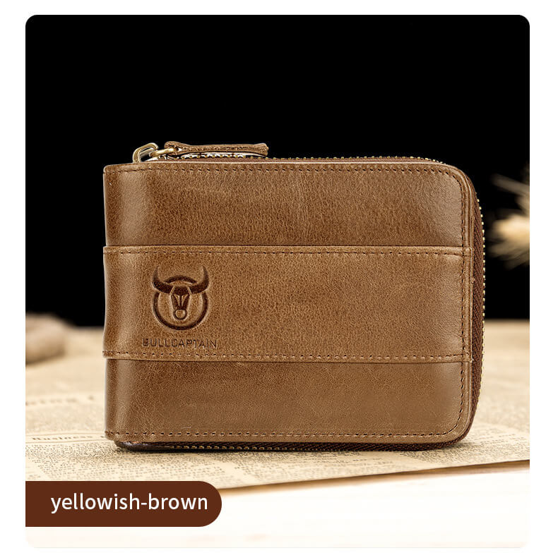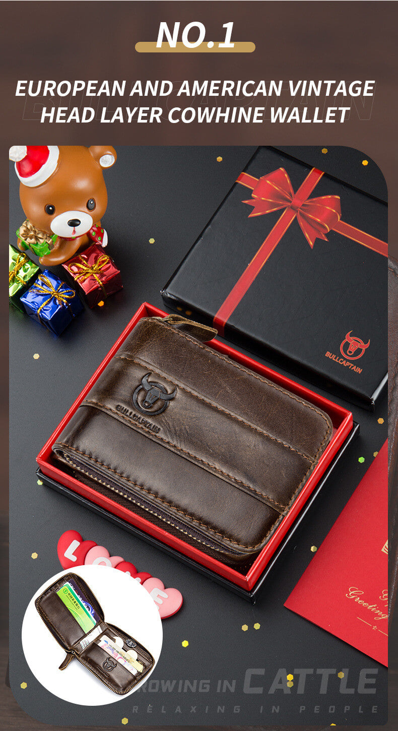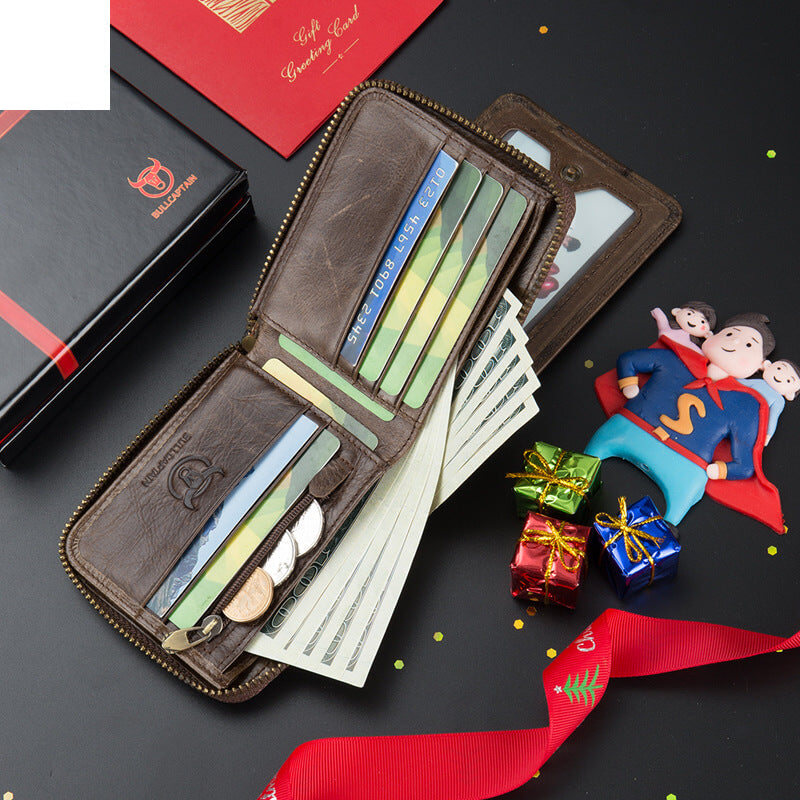 Genuine Leather Zipper Men Wallets Multi Card Slot ID Card Mini Holder Bags Bussiness Casual Coin Purse