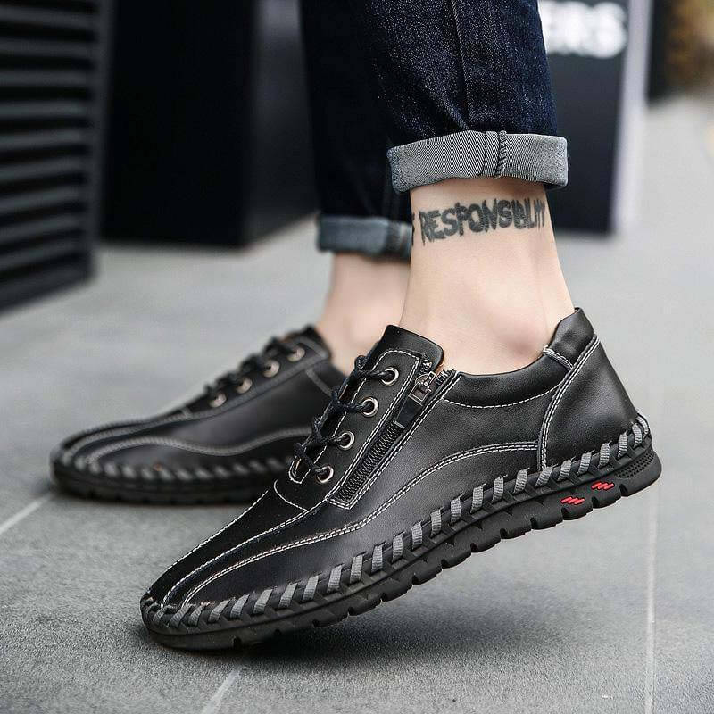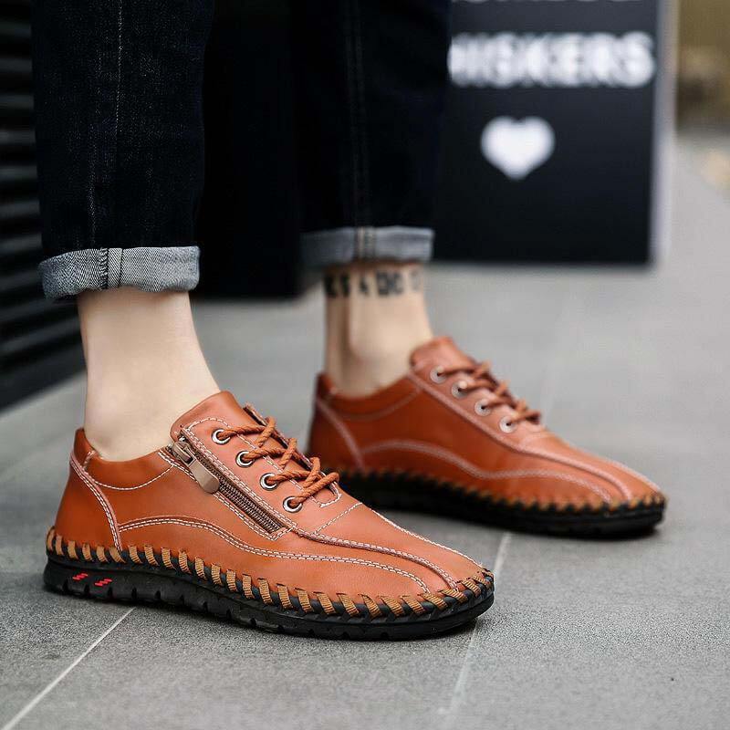 Color: black, yellow brown, blue, red brown surface material: leather Outsole material: rubber Type: hand sewing shoes Function: soft Occasion: Daily Closure Type: Lace Up, Zipper Season: all season Toe type: Round